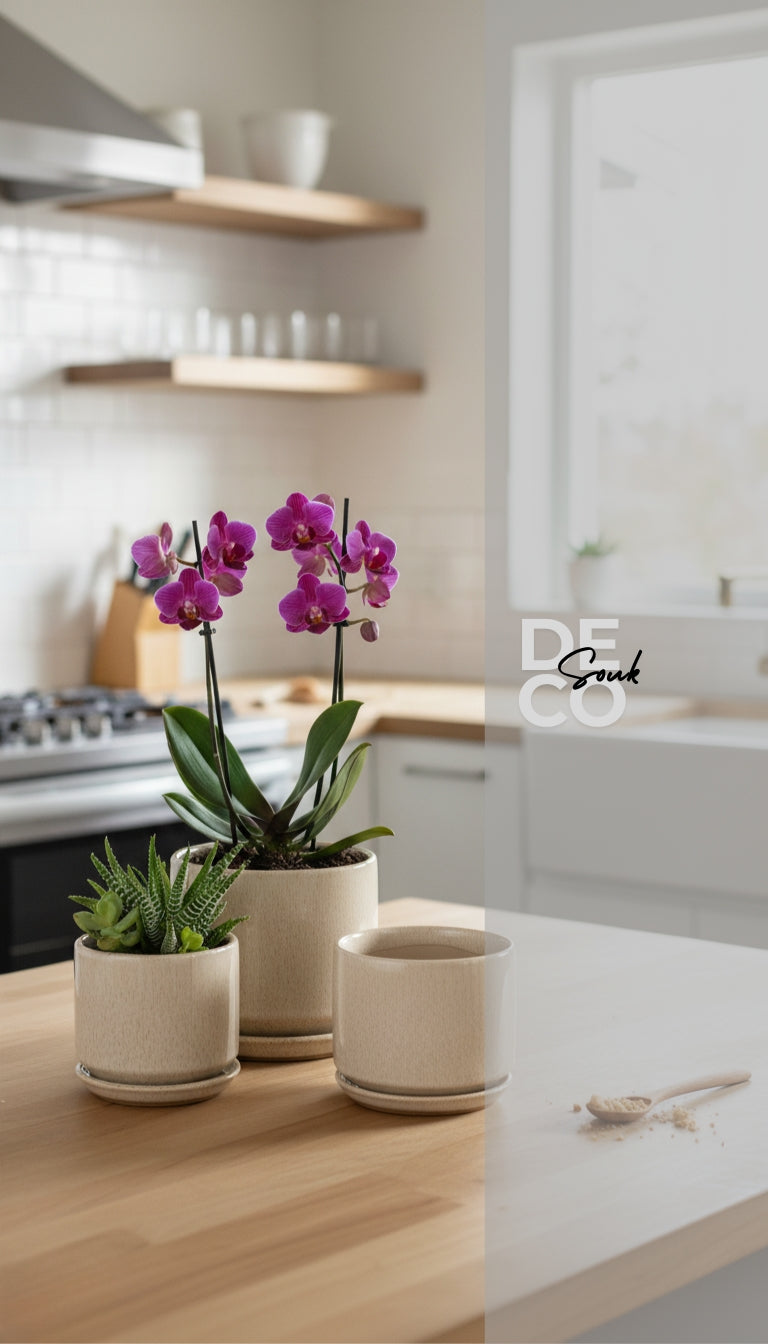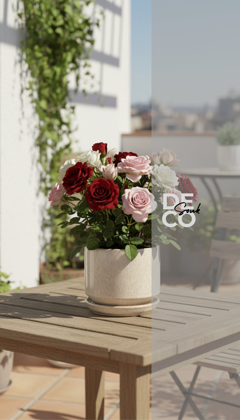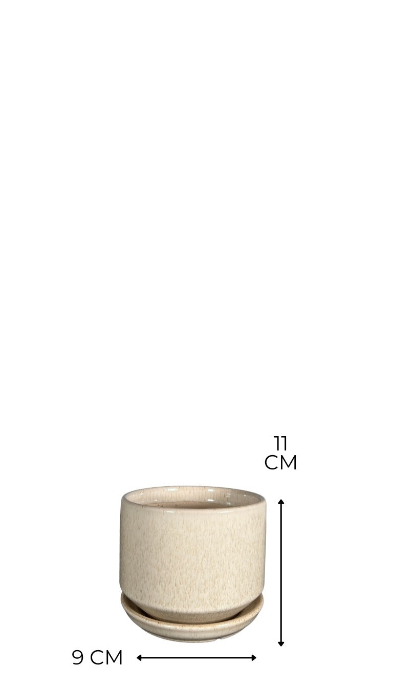 Inspired by soft desert tones, this beige ceramic pot with a tray adds a calm, natural touch to any space.