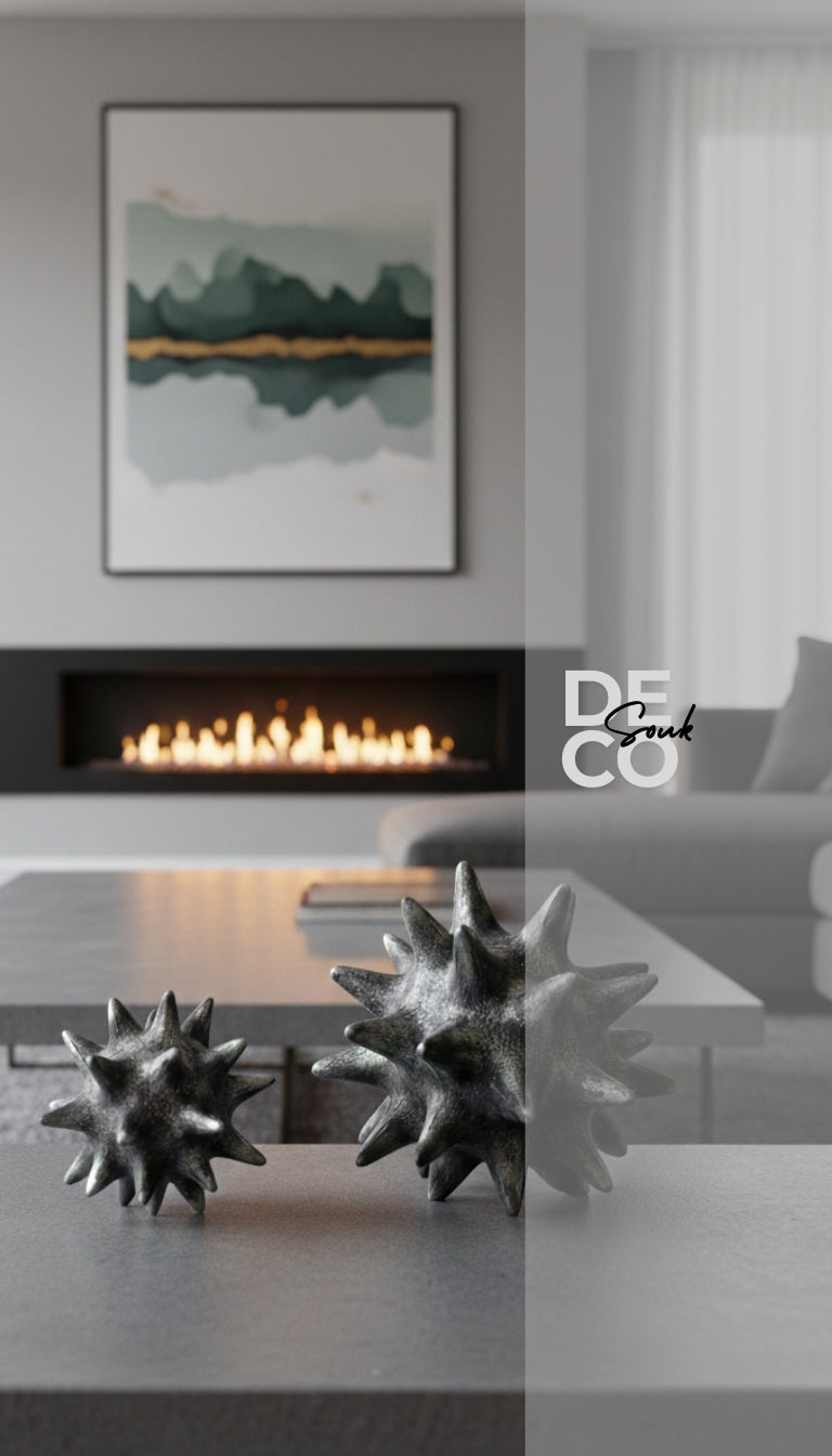 A bold decorative sculpture set of 2 with a textured spiked design, perfect for adding a modern artistic touch to shelves, consoles, or coffee tables.